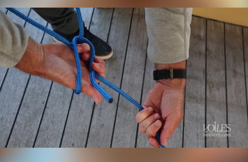mon équipier ancien marin fait le noeud de chaise avec une seule main ..