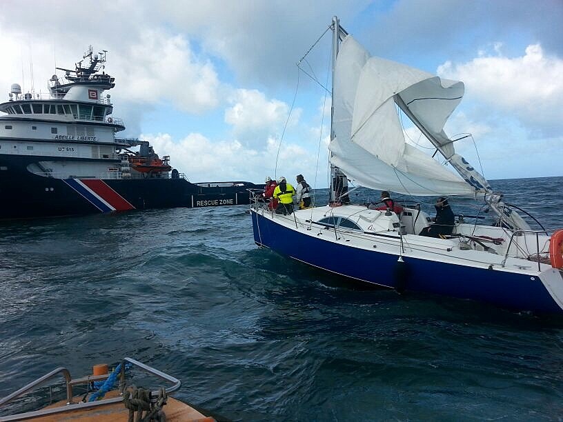 Le Crossa-Étel a été alerté. Vers 11 h 50, la vedette SNSM de Palais, « le Belle-Ile », était appelée et se rendait sur site. Les deux plaisanciers ont été récupérés sains et saufs. Le catamaran a ensuite été remorqué jusqu'au port de Palais.