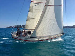 Le bateau est désormais à Antibes à 50 mns d'auto, il est a moi en Juillet aout hors saison de régates mais je participe aussi aux régates car je sais qu'avec Little Wing et mon fils sauf exceptions on est sur de gagner ou d’être dans les 3eme même hors classe et lui ne peut pas embarquer les bouteilles de vin millésimées qu'on gagne ! Il y a beaucoup de bateaux mais soyons franc le niveau n’est pas élevé sauf une poignée avec qui on se tire la bourre.