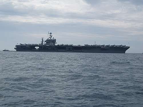 Attention : un arrêté préfectoral interdit d'approcher à moins de 500 mètres des porte-avions nucléaires et à moins de 100 mètres des autres bâtiments.