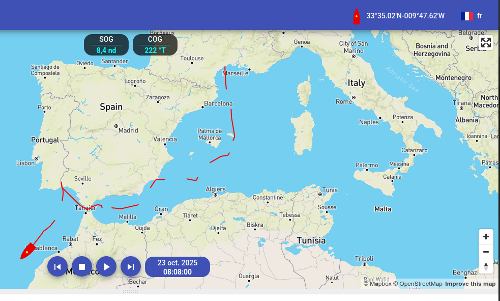 Merci pour le partage des liens. Pour info il a passé Gibraltar il y a 2 jours et repartira pour le Cap vert lundi ou mardi après une petite pause.
