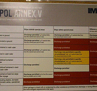 Par contre, longtemps les cargos avaient des futs de 200 litres accrochés au balcon arrière qu'ils remplissaient au port et vidaient au large, et il me semble que cela a a peu près disparu ces derniers années