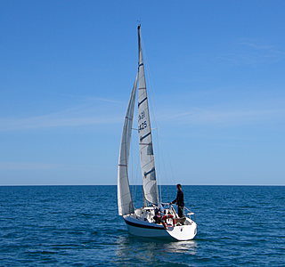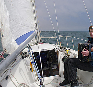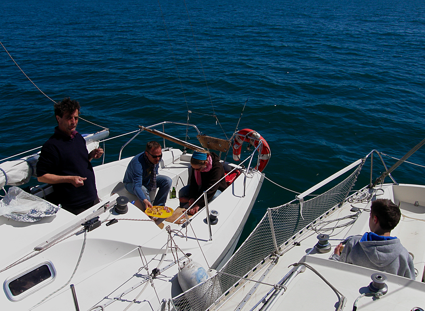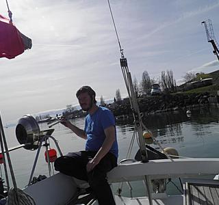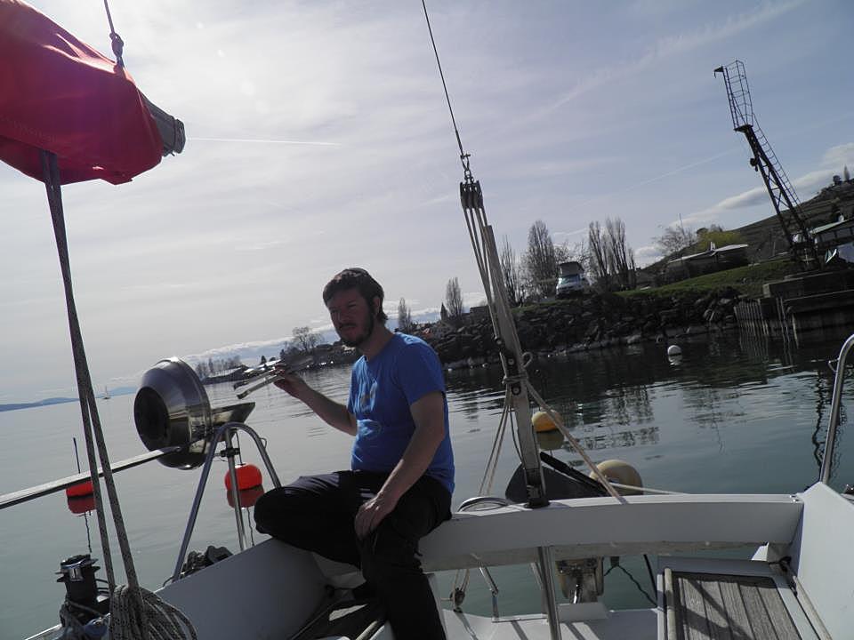 Premier week-end sur l'eau pour moi aussi. Parti de Genève vendredi à 15h15 par grand soleil et 15-20 noeuds de sud-ouest. Avec la GV à 1 ris, nous marchons probablement à 7-8 noeuds au grand largue, destination Cully. A 16h00 les ciel se couvre et le vent se renforce en prenant de l'ouest. A 16h15, les avis de prudence se mettent à tourner et à 16h30 nous nous retrouvons dans un joli petit coup de Joran (vent fort qui descend du Jura) avec 25 noeuds biens tassés et la pluie façon ouverture de vanne. Avec la GV toujours à 1 ris et largement débordée Triger se comporte plutôt bien, je pense que cela ne va pas durer et nous prenons la décision de continuer notre route plutôt que de nous abriter à Hermance. Effectivement 30 minutes plus tard le ciel se dégage et le vent tombe presque complètement en revenant au sud-ouest. Nous renvoyons le ris dans la GV puis envoyons le grand spi en tête qui nous tirera une bonne heure avant que le vent ne tombe complètement après une ultime averse qui sera la dernière de ce parcours. A 18h30, nous affalons le spi, bordons plat la GV et démarrons le moteur. Devant nous, les rideaux de pluie s'ouvrent les uns après les autres, par moment le vent remonte et nous permet de couper le moteur ou de le garder juste en appui pour maintener une vitesse suffisante pour arriver pas trop tard au Cullyjazz où nous attendent de beaux concerts. À 21h15, nous nous amarrons dans le charmant petit port de Cully et filons prendre un bain de foule pour nous réchauffer.
