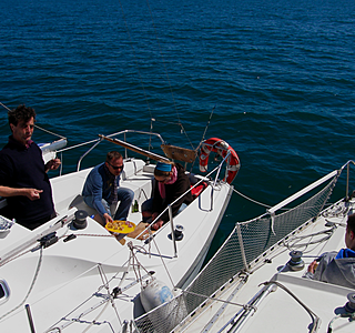Hier, belle journée, minivisu avec l'ami elpeyo et toute la compagnie, pique-nique Pic St Loup-saucisson en mer et pêche au gros ! :pouce: