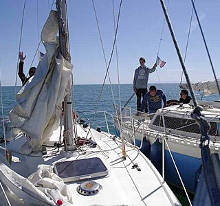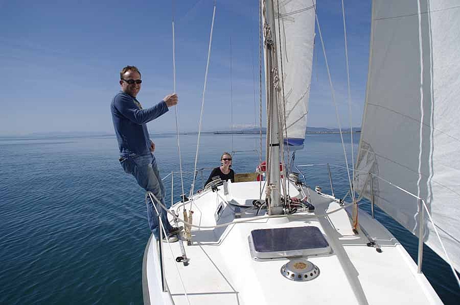 Première sortie autour de Porquerolles. 15 nœuds de vent, du soleil, le bonheur !