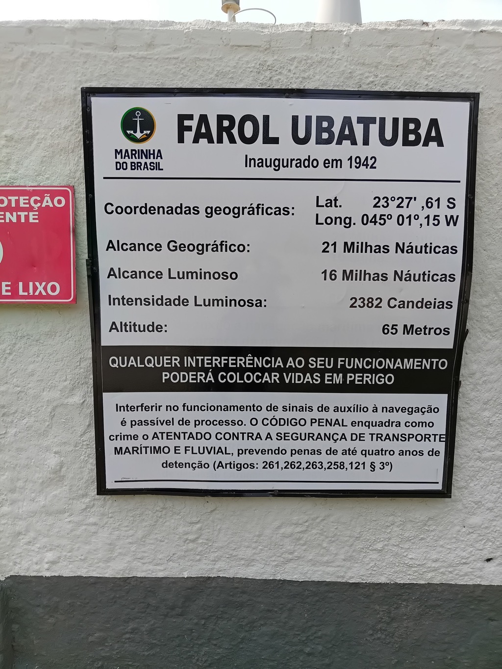 "A daymark panel colored yellow with an orange vertical stripe stands next to the lighthouse"