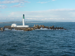 Le phare rouge au bout de cette jetée nous a rempli de joie. On avait vu la nuit ses grands frères trouer l'ombre de la nuit de leurs éclats blancs.