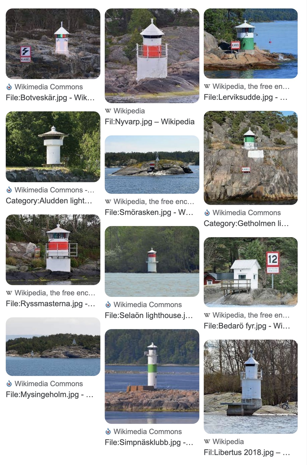 C'est dur tous ces noms d'îles en Finlandais et les noms complexes des phares. Ces phares qui se ressemblent mais pas vraiment, sans oublier que sur le Web il y a des erreurs avec des mélanges de photos.