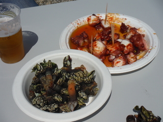 oui c'est la fête aux percebes dans de port qui n'en est âs vraiment un juste à l'ouest de Ribadeo et un peu avant la plage des cathédrales où il faut réserver sa place sur internet.