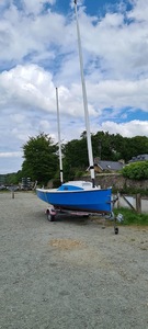 il est dans mon jardin sur la remorque ,je l'ai maté pour prendre les dimensions pour installer un spi de hobbie cat 14 .après avoir confectionné un bout dehors en carbone
