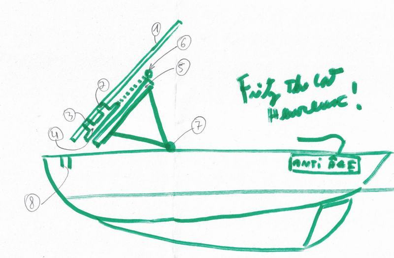Et avec une drisse sur le devant du mat qui revient sur l'AR du bateau et une chèvre que tu mets en place sur ton étrave ... pas possible ?