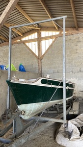Ce n’est pas très beau mais ça fonctionne. C’est certainement adaptable à différentes configuration. Perso je l’aurais fait avec des charnières pour le rabattre pendant le roulage. Dans ton cas vu les poids des tubes d’alu devraient suffire. Il n’en reste pas moins vrai que sur un bateau à quille fixe pour toutes les autres manipes à faire dedans à terre tu seras toujours haut par rapport au sol…