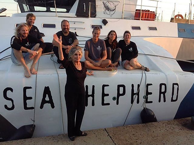 Peut-être la seule sortie qu'elle effectuera pour son anniversaire tant la cause des animaux lui tient à coeur, tant elle aime les actions de Sea Shepherd, et puis, quelle bel hommage à son ami Paul Watson, quelle belle publicité pour l'organisation.
